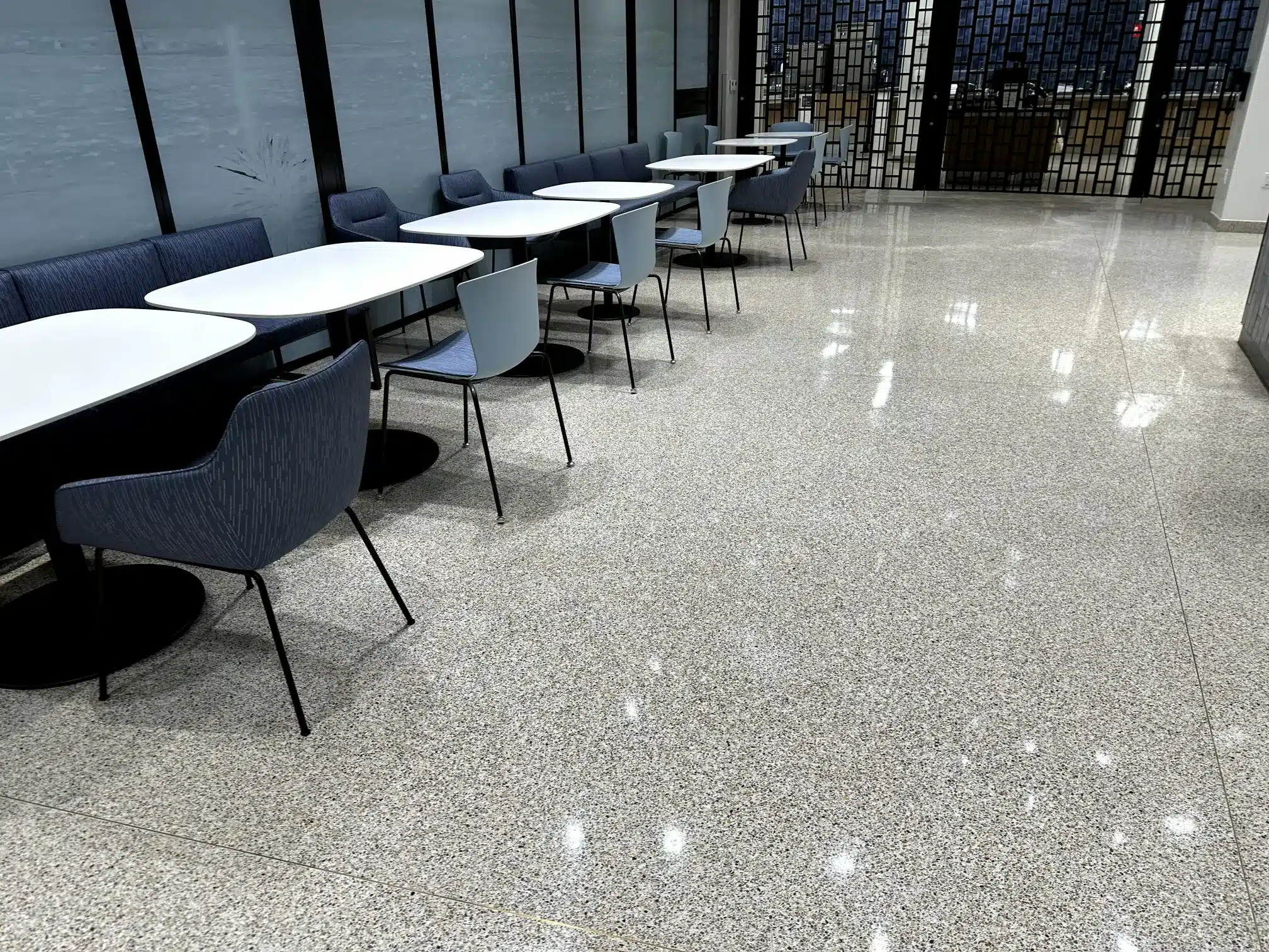 - Energy Efficiency: The reflective surface of polished concrete enhances lighting, helping reduce energy costs in large facilities.